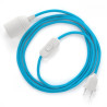 Lampe baladeuse style moderne avec câble textile Bleu Lagon coton et porte-douille métal effet Inox satiné.Longueur de câble au choix de 2 à 5 mètres. Cette lampe à suspendre peut-être utilisée au 4 coins de votre maison mais aussi dans le cadre professionnel, salon et foire exposition en intérieur.
